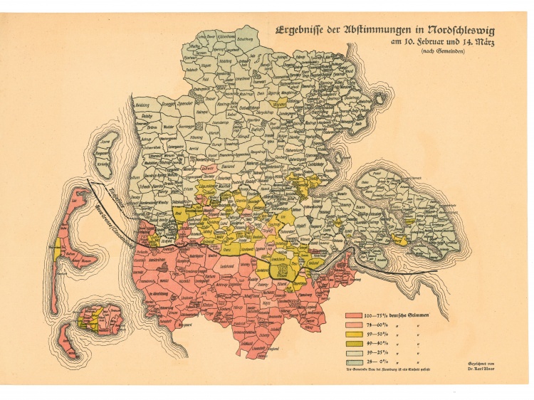 Am 10. Februar 1920 stimmten in der ersten Zone 75% für Dänemark und 25% für Deutschland. In einigen Kreisstädten (Tondern, Apenrade, Sonderburg) gab es deutliche deutsche Mehrheiten, aber in weiten ländlicheren Gebieten gab es auch deutliche dänische Mehrheiten.