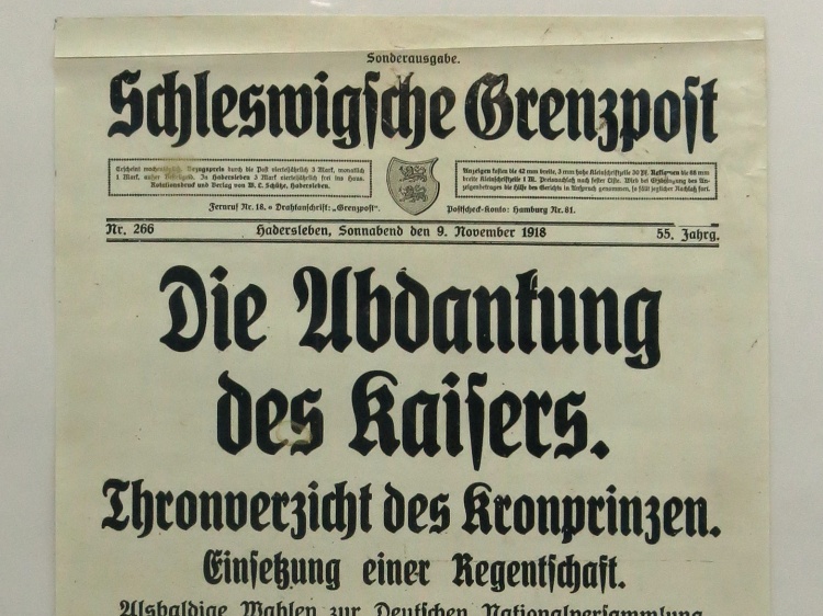 Mit der Abdankung des Kaisers und der letzten von diesem ernannten Regierung am 9.11. wurde Deutschland zur Republik. Ein Rat der Volksbeauftragten führte zunächst die Regierungsgeschäfte und organisierte für den 19.1.1919 die erste Wahl zur verfassungsgebenden Nationalversammlung. Erstmals konnten Frauen mitwählen, so wie es ein Dreivierteljahr zuvor übrigens auch erstmals in Dänemark geschehen war.