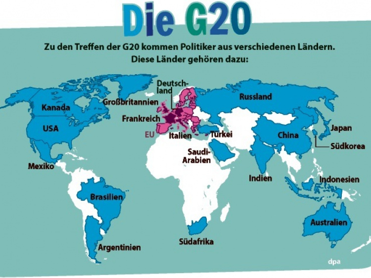 Aber der Reihe nach. Was heißt denn überhaupt G20? Die Abkürzung steht für „Gruppe der 20“. Diese 20 sind: 19 verschiedene Länder plus die Europäische Union. Viele kürzen die Europäische Union auch mit EU ab. Damit ist eine Gemeinschaft von 28 europäischen Ländern gemeint. Sie gehört als Ganzes zur G20.