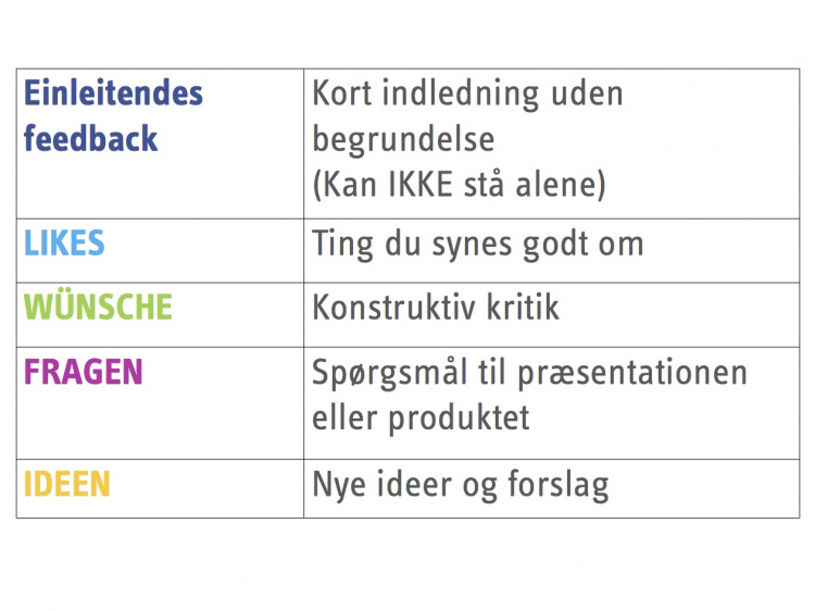 Feedback som disciplin er en grundlæggende positiv kompetence, som eleverne har brug for i mange andre sammenhæng. For tyskundervisningen kan feedback fra elev til elev, eller fra elevgruppe til elevgruppe, skabe en mulighed for eleverne kan afprøve deres mundtlige kunnen, lave fejl, men også få oplevelsen af at kunne gøre sig forståeligt på tysk, når de indgår i en forpligtende interaktion, som ikke har læreren som modtager.
