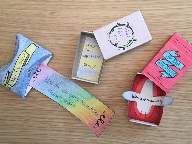Mache deine eigenen Grußschachteln und lege sie einem lieben Menschen vor die Haustür oder in den Postkasten.