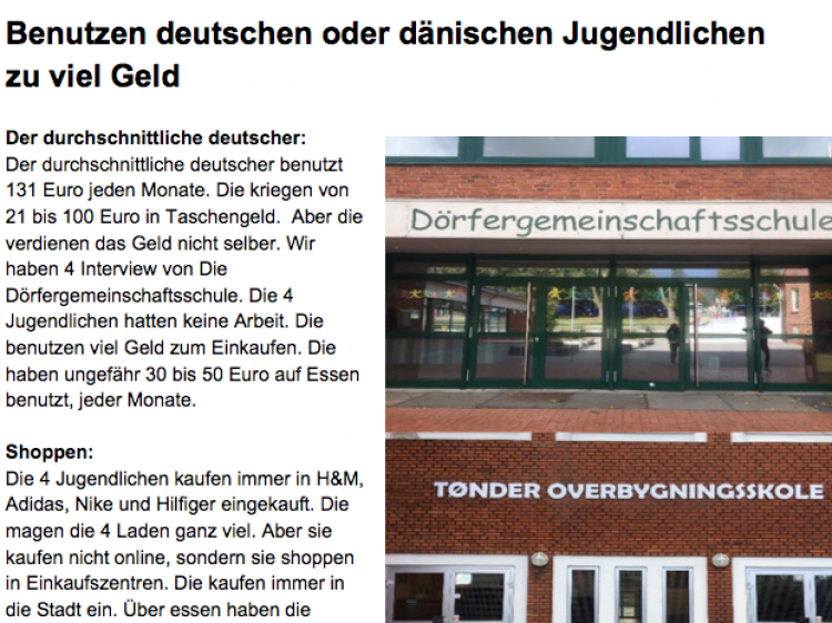 Ein weiterer Artikel kam von Hosna und Ofelia. Sie haben sich mit Taschengeld und Shopping-angewohntheiten von deutschen und dänischen Jugendlichen beschäftigt.