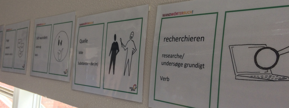 - Version: Die Vokabel steht nur auf Dänisch. Die Schüler erarbeiten nun selbst die deutsche Übersetzung und die Wortklassenzuordnung. Die Schüler trainieren so das nachschlagen in einem Wörterbuch und orientieren sich bewusst in den Wortklassen. ACHTUNG – der Lehrer sollte immer kontrollieren, dass die Schüler zu genau der Übersetzung kommen, wie sie im Wandwörterbuch vorgesehen ist. Einige Wörter könne verschiedenen sinngemäße Übersetzungen haben.